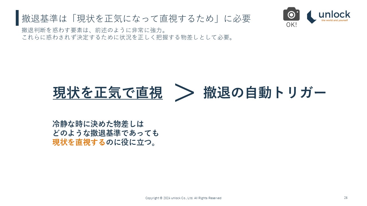 我々unlockとしましては、撤退基準は必要だと考えております。