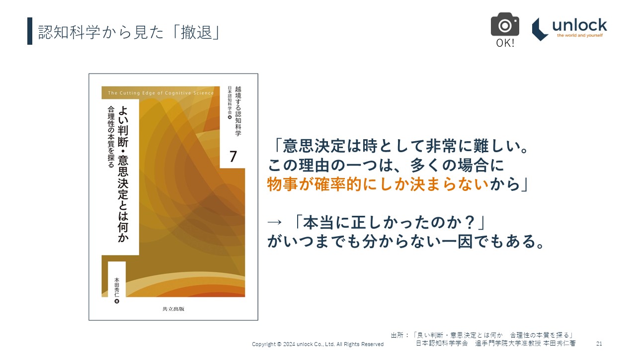 撤退に関しては認知科学という領域からも、そのようなことが載っていたので、引用しました。