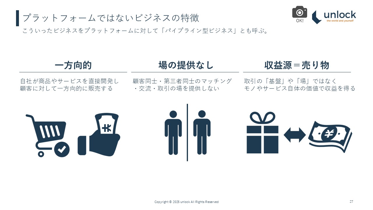 これらもある意味ではその流行りの一部のように見えるかもしれませんが、プラットフォームビジネスというのは、本日のセミナーの意図として、我々unlockではもう『原理原則』と考えています。