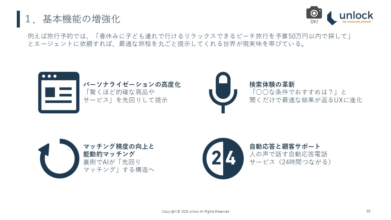 マッチング精度もさらに向上します。裏側でAIが先回りするような構造です。話しながら何だか怖いですが、こういうことが能力的にはもうできる。