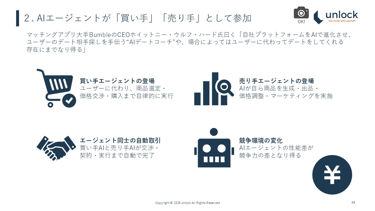 あと、AIエージェントが買い手・売り手として参加する。これがいよいよやってきます。