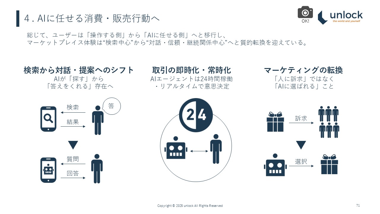 そして4つ目、AIに任せる消費行動。これも先程お話したようなことなので、割愛します。